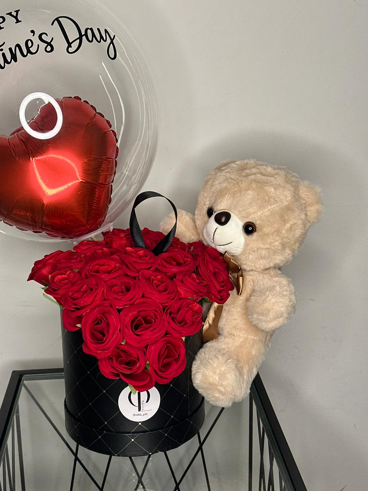 مرات ممكن يصير تغييرات بسيطة بالهدية مثل لون البوكس، نوع الورد، أو شكل الدبدوب. الأكيد انه رح نحاول دايماً نخليها أقرب ما يمكن للصورة، ومنوعدكو تكون النتيجة حلوة ومرتبة.