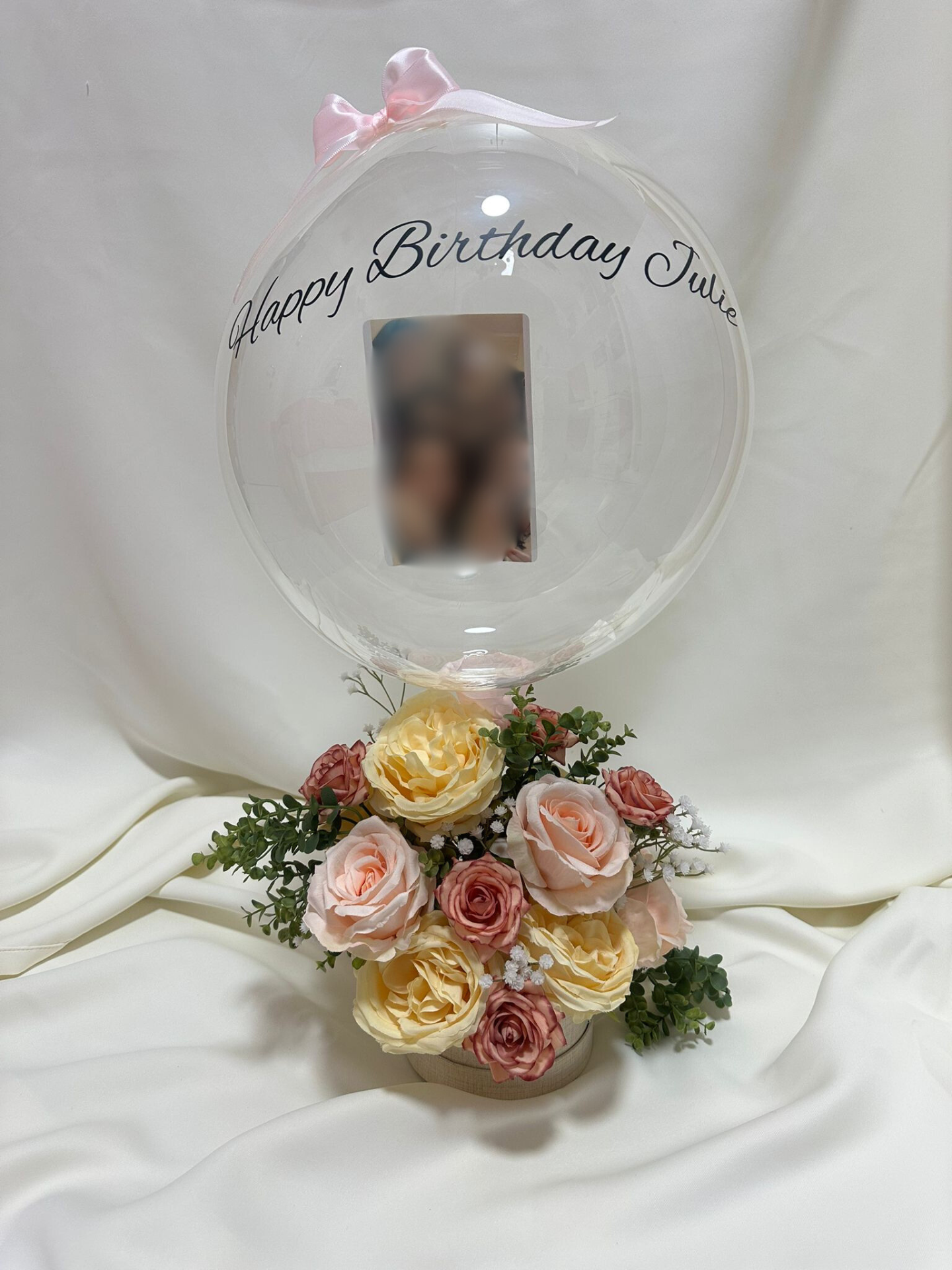 مضمون الهدية: بوكس ، ورد اصطناعي، بالون، صورة بقلب البالون، كتابة حسب اختيارك على البالون